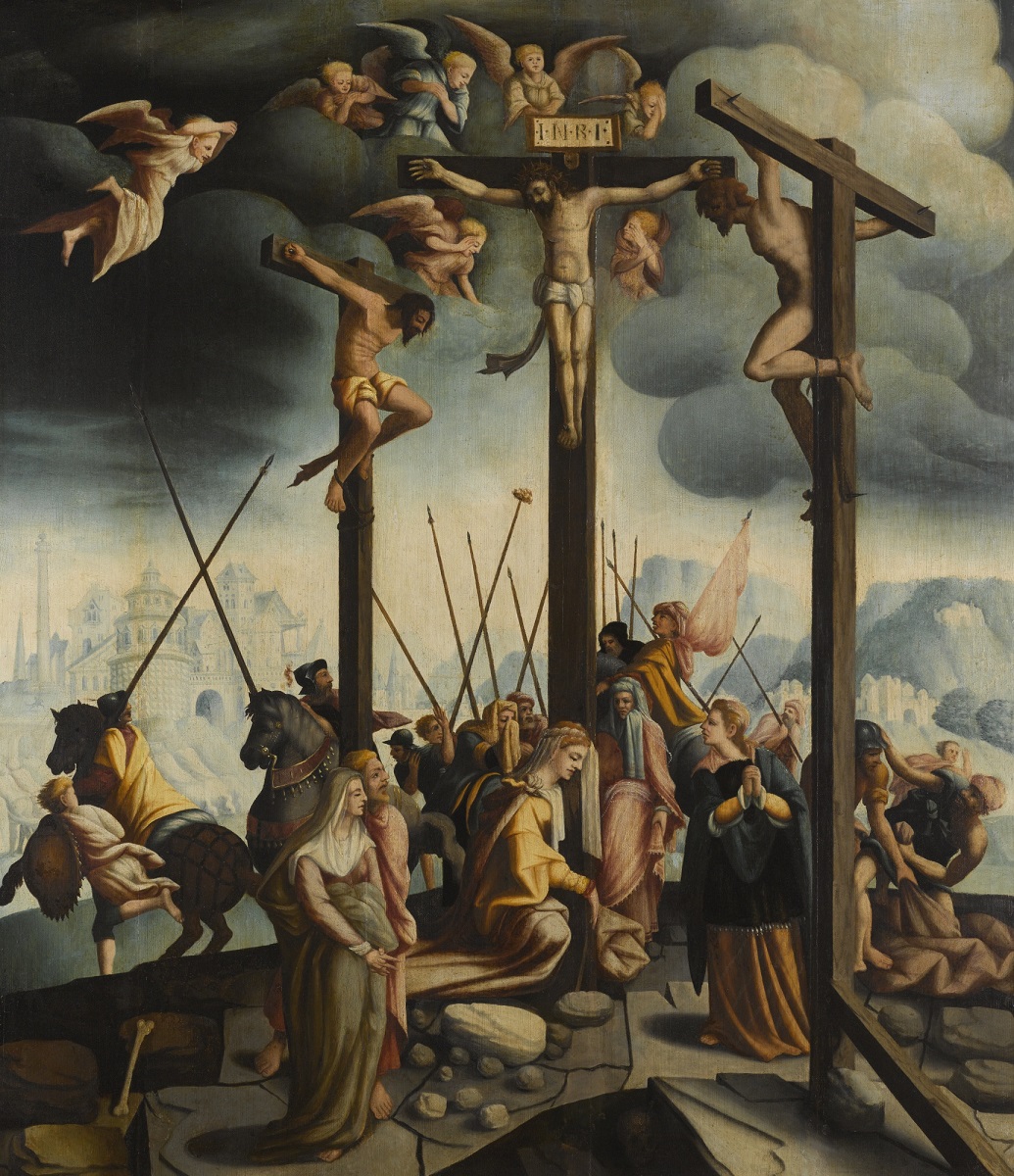 A copy after the central panel of the triptych by Jan van Scorel and Studio, of circa 1535, in the Museum Catharijneconvent, Utrecht, Netherlands.