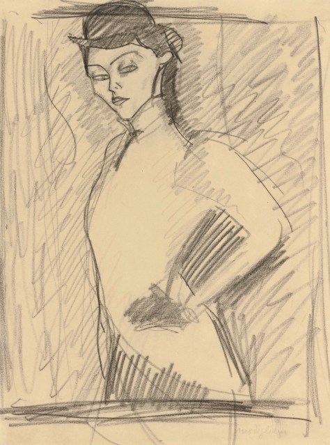 Modigliani drafted many sketches for L’Amazone; however, the present work relates most closely to the finished product.