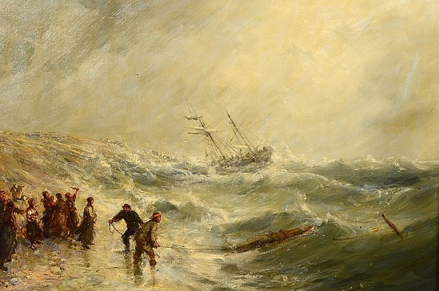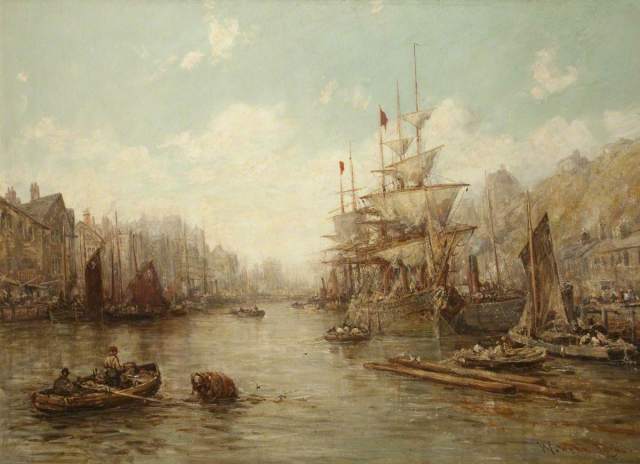 William Edward Webb, (British, 1862-1903). A permanent resident of Manchester, he widely frequented the coasts and ports of Great Britain, producing an impressive output of active scenes celebrating the challenges faced by those who plied their trades on the open ocean.