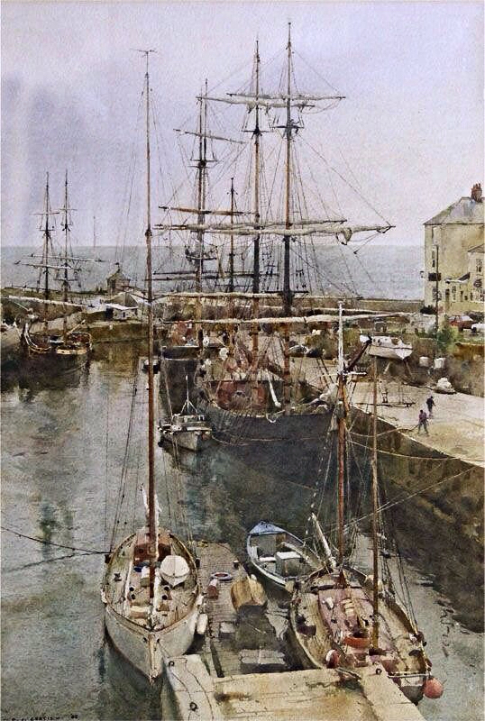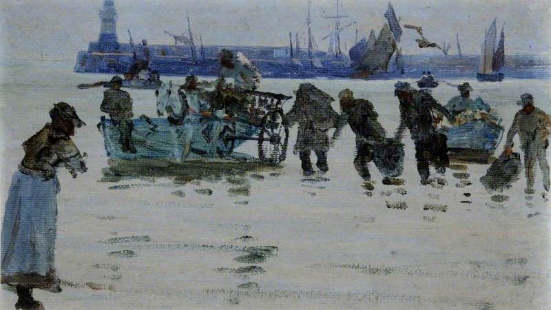 Webb’s art is celebratory in spirit while it offers no false glamour of the hard lives faced by working sailors and fishermen in the 19th century. His seas are vibrant and active, his atmospheric light exceedingly realistic of the heavy skies of the British Isles, and his portrayals of the local people artistically insightful. More William Edward Webb