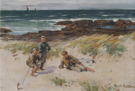 Michael Brown was a British visual artist who was born in 1854. Michael Brown has had numerous gallery and museum exhibitions, including at the Corbett vs. Dempsey and at the ADA Gallery. Several works by the artist have been sold at auction, including ‘PLAYING THE FIRST HOLE AT POINT GARRY, NORTH BERWICK’ sold at Sotheby’s Edinburgh ‘Gleneagles Paintings’ in 2005 for $129,672. There have been numerous articles about Michael Brown, including ‘Baltimore riots: Artist hangs ‘lynched’ black dolls from tree in protest at deaths of Walter Scott, Eric Garner and Michael Brown’ written by Neela Debnath for The Independent in 2015. The artist died in 1957. More Michael Brown