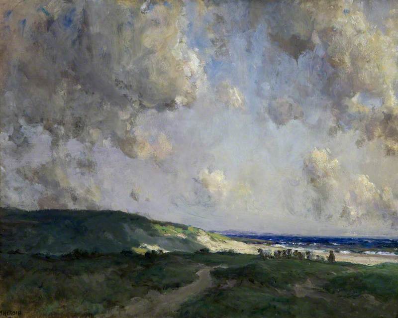 James Humbert Craig (July 12, 1877 in Belfast – June 12, 1944) was an Irish painter. Craig was born in Belfast to Alexander Craig, a tea merchant, and a Swiss mother, Marie Metzenen, from a family with a painting tradition. He was raised in County Down and maintained a studio at Cushendun, County Antrim. Craig abandoned a career in business, briefly attended the Belfast School of Art, and became a mostly self-taught painter of landscapes. Among his favorite panoramas were Donegal, Connemara and the Glens of Antrim. Craig was elected to the Royal Ulster Academy and the Royal Hibernian Academy in 1928. He also exhibited at the Fine Art Society in London. More James Humbert Craig