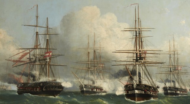 (the burning Austrian frigate Schwarzenberg, behind the frigate Radetzky)