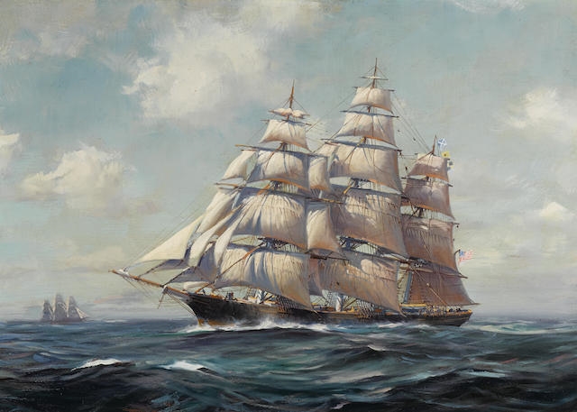 Montague Dawson RMSA, FRSA (1890–1973) was a British painter who was renowned as a maritime artist. His most famous paintings depict sailing ships, usually clippers or warships of the 18th and 19th centuries. Montague was the son of a keen yachtsman and the grandson of the marine painter Henry Dawson (1811–1878), born in Chiswick, London. Much of his childhood was spent on Southampton Water where he was able to indulge his interest in the study of ships. For a brief period around 1910 Dawson worked for a commercial art studio in Bedford Row, London, but with the outbreak of the First World War he joined the Royal Navy. Whilst serving with the Navy in Falmouth he met Charles Napier Hemy (1841–1917), who considerably influenced his work. In 1924 Dawson was the official artist for an Expedition to the South Seas by the steam yacht St.George. During the expedition he provided illustrated reports to the Graphic magazine.