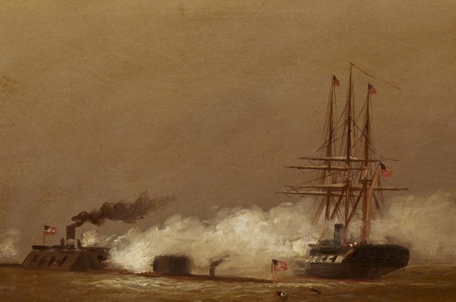 The Battle of Hampton Roads, often referred to as either the Battle of the Monitor and Merrimack (or Virginia) or the Battle of Ironclads, was the most noted and arguably most important naval battle of the American Civil War from the standpoint of the development of navies. It was fought over two days, March 8–9, 1862. The battle was a part of the effort of the Confederacy to break the Union blockade, which had cut off Virginia’s largest cities, Norfolk and Richmond, from international trade.