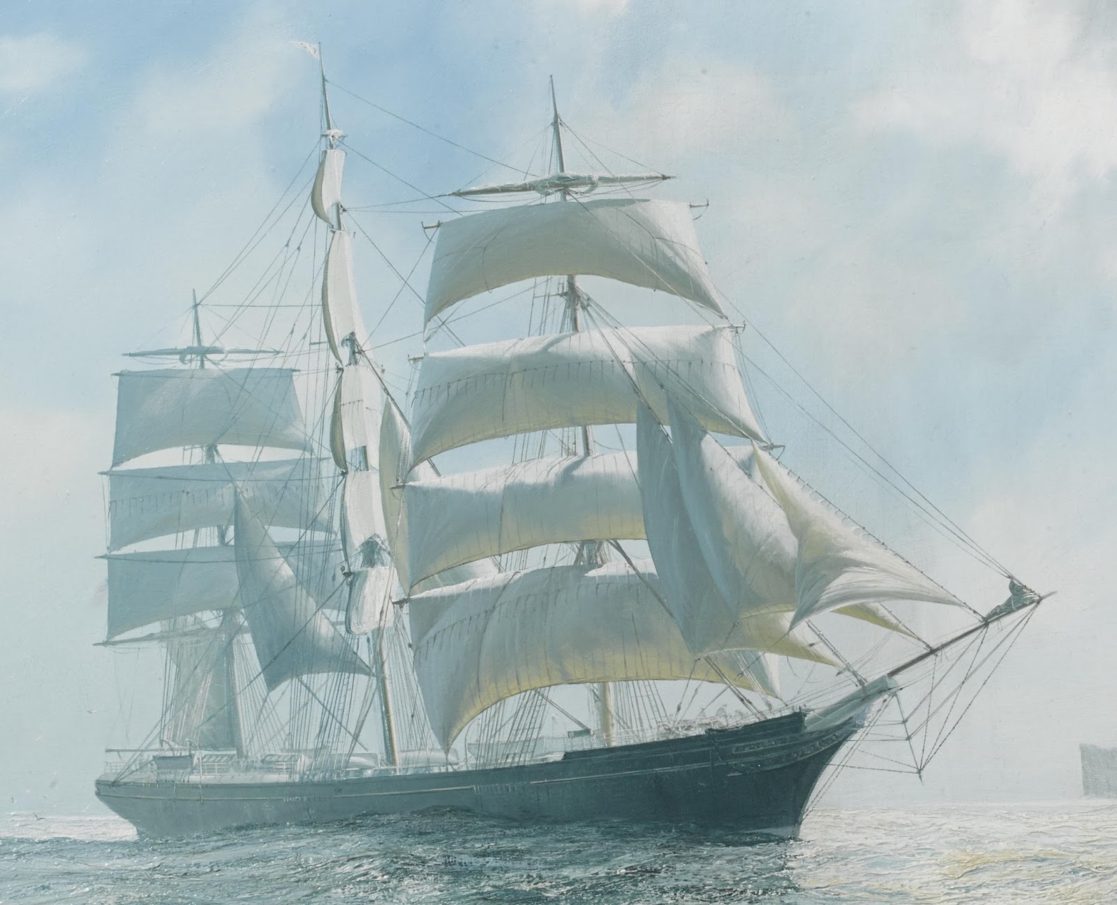 He lives and loves the subject he paints, with much of his spare time spent sailing. ‘How is it possible to express the air and sea and sky without having experienced the elements, knowing how a ship works, pulled the ropes ?’ he asks. More John Steven Dews