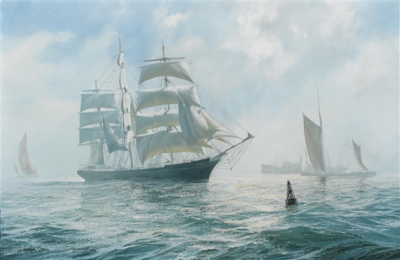 John Steven Dews (British, b. 1949) was born in Beverley, North Humberside in 1949. He has risen from a boy who failed his art ‘A’ level to become Britain’s most sought-after living marine artist. His grandfather was then Assistant Dockmaster at the Hull Docks. He was brought up on a tradition of the sea, the family being able to trace their nautical connections back to the seventeenth century.