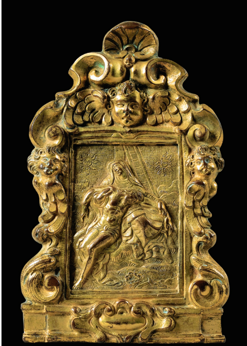 A FRENCH OR ITALIAN 16TH CENTURY GILT BRONZE PAX FIGURING THE PIETÀ