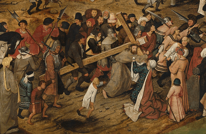 Brueghel has depicted Christ, bearing his cross, as a non-descript figure dressed in grey and hardly stands out from the crowd. He is not the centre of attention in this sprawling painting and yet he has the leading role in the story. More The Procession to Calvary by Pieter Brueghel the Younger