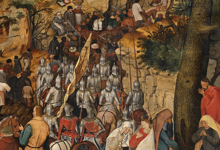 Brueghel has depicted Christ, bearing his cross, as a non-descript figure dressed in grey and hardly stands out from the crowd. He is not the centre of attention in this sprawling painting and yet he has the leading role in the story. More The Procession to Calvary by Pieter Brueghel the Younger