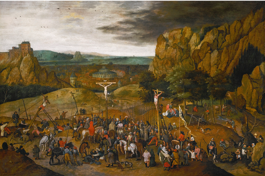 The painting is deemed to be one of Brueghel the Younger’s best works. His setting for the biblical scene illustrating Christ’s journey to his own crucifixion atop Mount Calvary is a Flemish landscape and is full of fascinating details.