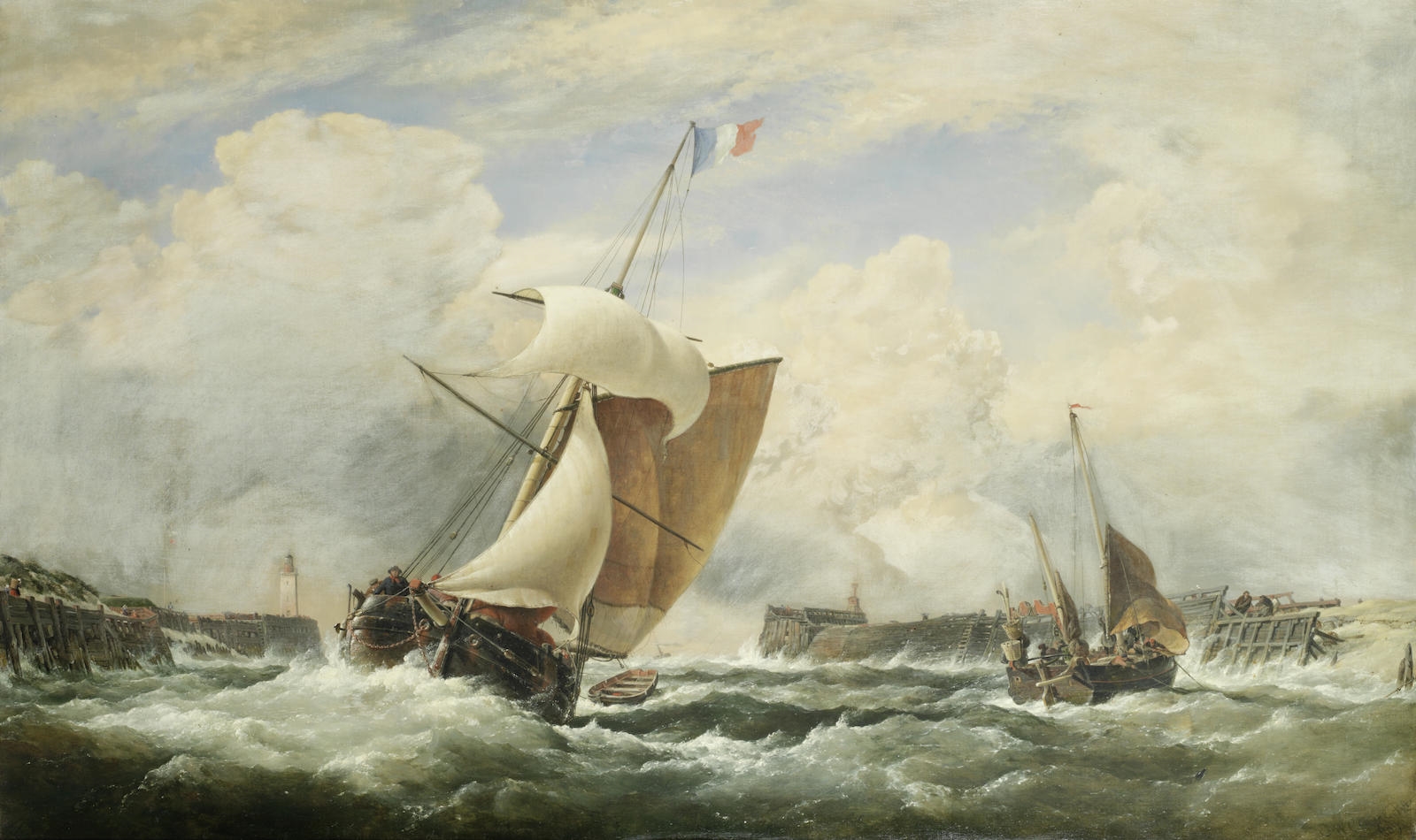 He went on to travel and paint with great industry at home and abroad, indulging his love of the 17th-century Dutch marine artists with a visit to the Netherlands in 1837. He returned regularly over the next 23 years, studying the effects of the coastal landscape and light, as well as the works of the country’s Old Masters, resulting in highly successful paintings. He went on to travel in Scandinavia, Spain, North Africa and, above all, to Venice. In 1858, he was elected into the National Academy of Design as an Honorary Academician. . More Edward William Cooke