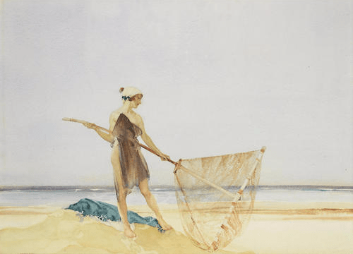 Sir William Russell Flint (4 April 1880 – 30 December 1969) was a Scottish artist and illustrator who was known especially for his watercolour paintings of women. He also worked in oils, tempera, and printmaking. He was born in Edinburgh then educated at Daniel Stewart’s College and Edinburgh Institution. From 1894 to 1900 Flint apprenticed as a lithographic draughtsman while taking classes at the Royal Institute of Art, Edinburgh. From 1900 to 1902 he worked as a medical illustrator in London while studying part-time at Heatherley’s Art School. He furthered his art education by studying independently at the British Museum.