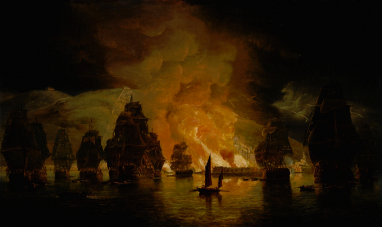 Luny left Holman’s studio in 1780. It was around this time that Luny was frequently exhibiting at the Royal Academy, in a total of twenty-nine exhibitions between 1780 and 1802. In Leadenhall Street, Luny became acquainted with a “Mr. Merle”, a dealer and framer of paintings who promoted Luny’s paintings for over twenty years, to great success. Luny also found a wealthy source of business in Leadenhall Street, where the British East India Company had their headquarters; their officers commissioned many paintings and portraits from Luny. Luny was occasionally invited as a guest on the Company’s ships on special occasions and voyages.