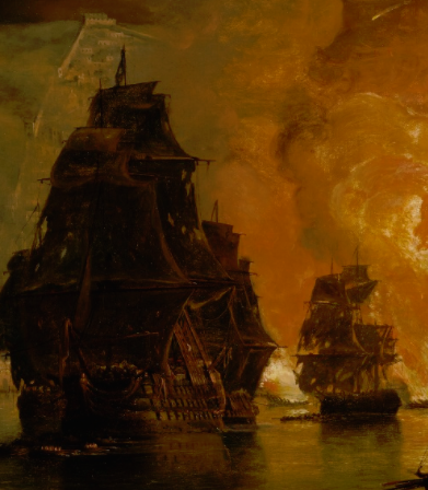 The action was under the command of Admiral Lord Exmouth off Algiers on 27 August 1816. Following Napoleon’s final defeat in 1815, the Royal Navy no longer needed the assistance of the Barbary States as a source of supplies for Gibraltar and would no longer tolerate further threat of piracy in the Mediterranean, or the systemic enslavement of Europeans in North Africa. A diplomatic mission was undertaken to secure the release of British subjects held in captivity. However, when Algerian troops massacred two hundred Corsican, Sicilian and Sardinian fishermen who were under British protection, it was finally decided that action should be taken.