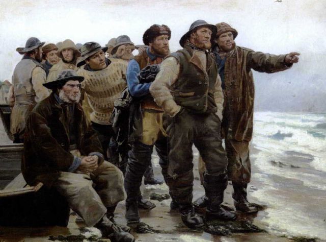 Michael Peter Ancher (9 June 1849 – 19 September 1927) was a Danish realist artist. He is remembered above all for his paintings of fishermen and other scenes from the Danish fishing community in Skagen. Ancher was born on the island of Bornholm. He attended school in Rønne but was unable to complete his secondary education as his father ran into financial difficulties. In 1866, he met the painters Theodor Philipsen and Vilhelm Groth. Impressed with his own early work, they encouraged him to take up painting as a profession. In 1871, he spent a short period at C.V Nielsen’s art school as a preliminary to joining the Royal Danish Academy of Art in Copenhagen later in the year. Although he spent some time at the academy, he left in 1875 without graduating.