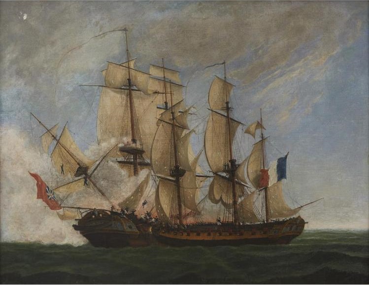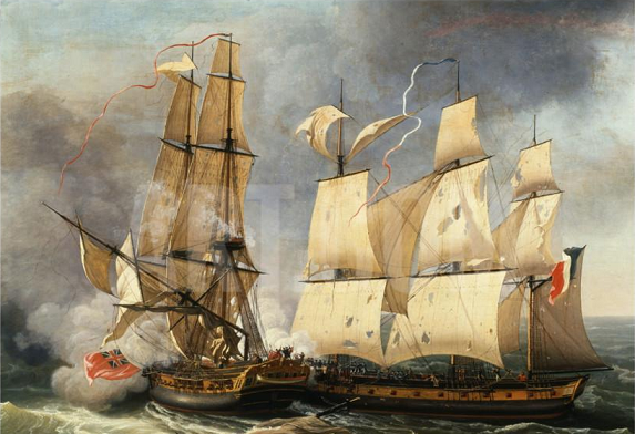 French corvette Bayonnaise boarding HMS Ambuscade during the Action of 14 December 1798