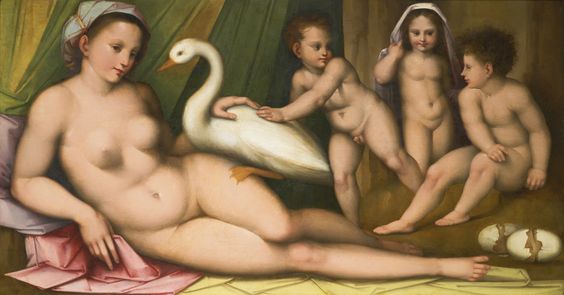 eda and the swan is an extraordinary style painting belonging to a period of Luca Cambiaso not always supported by the same creative impulse. The work in fact, referring to the years around 1570, is definitely one of the greatest achievements in the purity of lines and elegant stylized forms. The imposing figure of the swan, which houses within the great wings of the diaphanous body Leda, manages to preserve the majesty of the father of the gods, Zeus, hiding under his remains, according to the myth that describes one of the most fascinating amorous tricks. In 1999 Maria Cali in the book “The second manner of profane paintings by Luca Cambiaso” published “Leda and the Swan” as an authentic work of the painter Ligurian emphasizing in a special way as the theme dedicated to the loves of Jupiter in the Italian painting of the early sixteenth century was particularly widespread episode of fertilization of the fascinating queen of Spartan by Jupiter by turning into a swan… More