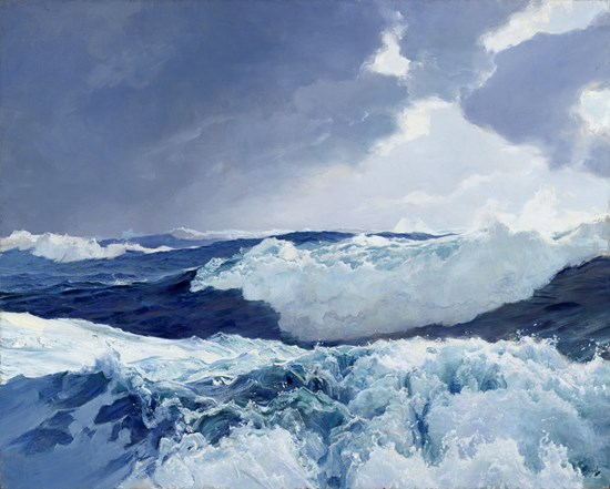 Montague Dawson RMSA, FRSA (1890–1973) was a British painter who was renowned as a maritime artist. His most famous paintings depict sailing ships, usually clippers or warships of the 18th and 19th centuries. Montague was the son of a keen yachtsman and the grandson of the marine painter Henry Dawson (1811–1878), born in Chiswick, London. Much of his childhood was spent on Southampton Water where he was able to indulge his interest in the study of ships. For a brief period around 1910 Dawson worked for a commercial art studio in Bedford Row, London, but with the outbreak of the First World War he joined the Royal Navy. Whilst serving with the Navy in Falmouth he met Charles Napier Hemy (1841–1917), who considerably influenced his work. In 1924 Dawson was the official artist for an Expedition to the South Seas by the steam yacht St.George. During the expedition he provided illustrated reports to the Graphic magazine.