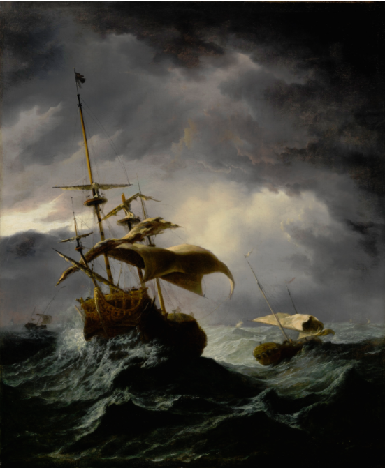 AN ENGLISH SHIP IN A GALE ATTEMPTING TO LIE-TO
