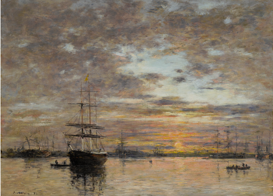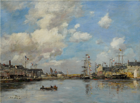 Born in Honfleur and the son of a sailor, Boudin was drawn to the ports and coastline of northern France. The artist’s practice of painting largely en plein air, though often finishing his paintings in the studio, enabled him to endow his works with an energetic immediacy and freshness. As Boudin inscribed in one his notebooks, “Beaches. Produce them from nature as far as is possible… things done on the spot or based on a very recent impression can be considered as direct paintings” Boudin’s art was an important source of inspiration for the next generation of artists, particularly the Impressionists. He was both a friend and mentor of Claude Monet, and is credited with having first shown him the importance of painting in the open air. More on Boudin paintings