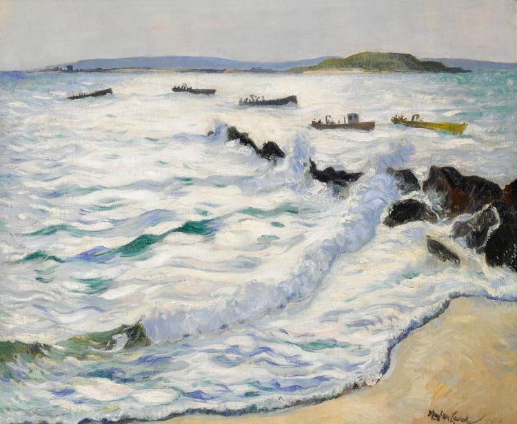 Lever arrived in New York City in 1912 and painted views of the Hudson River, Times Square and Central Park. Upon discovering the American east coast, he painted in Gloucester, MA for several summers and at Marblehead, MA. From 1919 to 1931, Lever taught art classes at the Art Students League of New York where he maintained a Gloucester studio and often traveled to paint on Nantucket and Martha’s Vineyard. In 1924, Lever was commissioned to paint a portrait of the presidential yacht, Mayflower, which was subsequently presented to President Calvin Coolidge in the Cabinet Room of the White House.