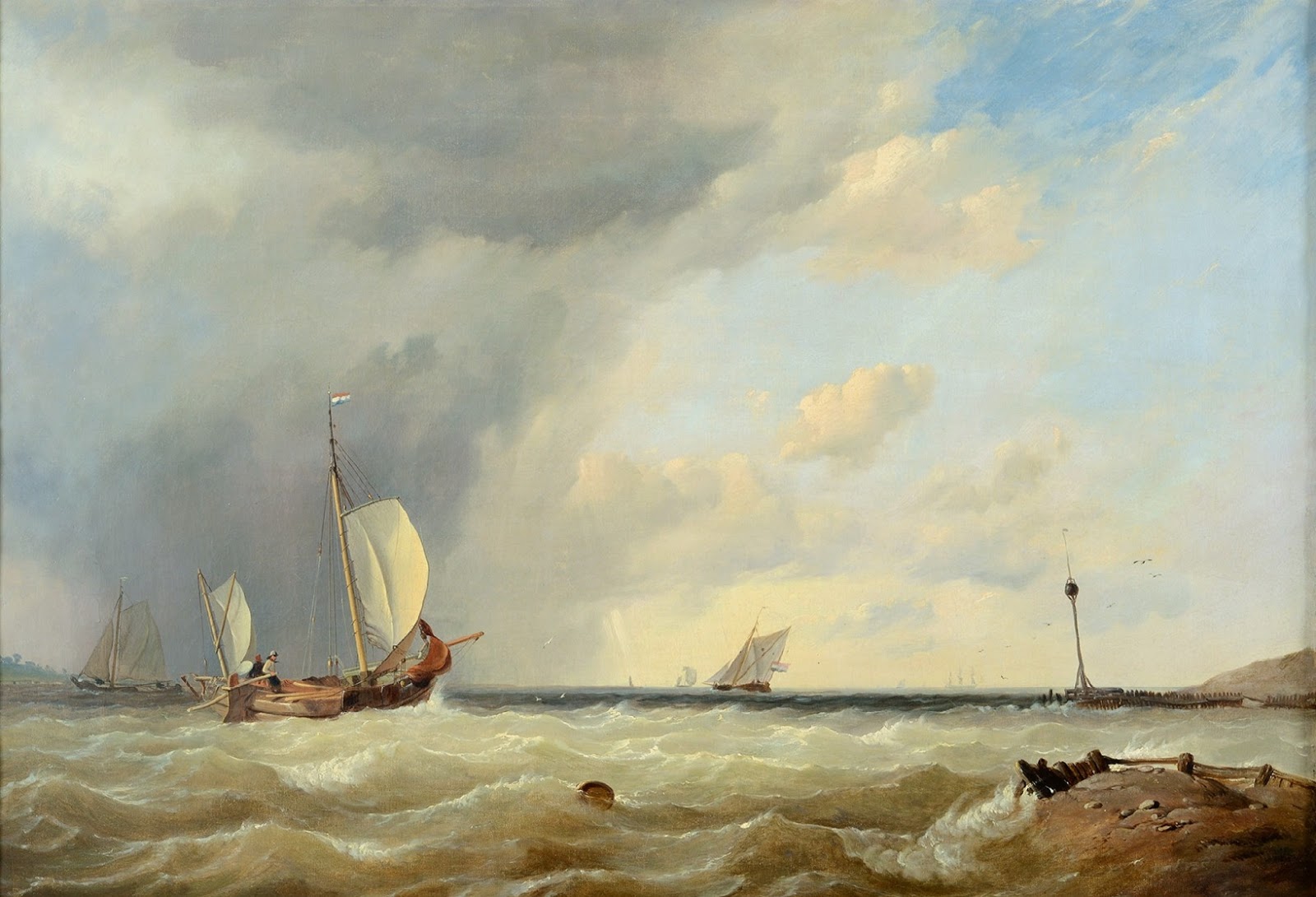 DUTCH FISHING BOATS IN CHOPPY COASTAL WATERS