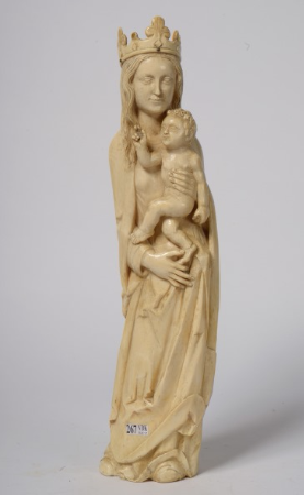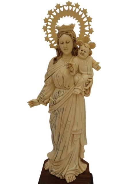 On a cloud base, this busy winged angel with three heads and a crescent moon. put your hands over your chest, facing the view with inset glass eyes upward. More on A youthful Madonna