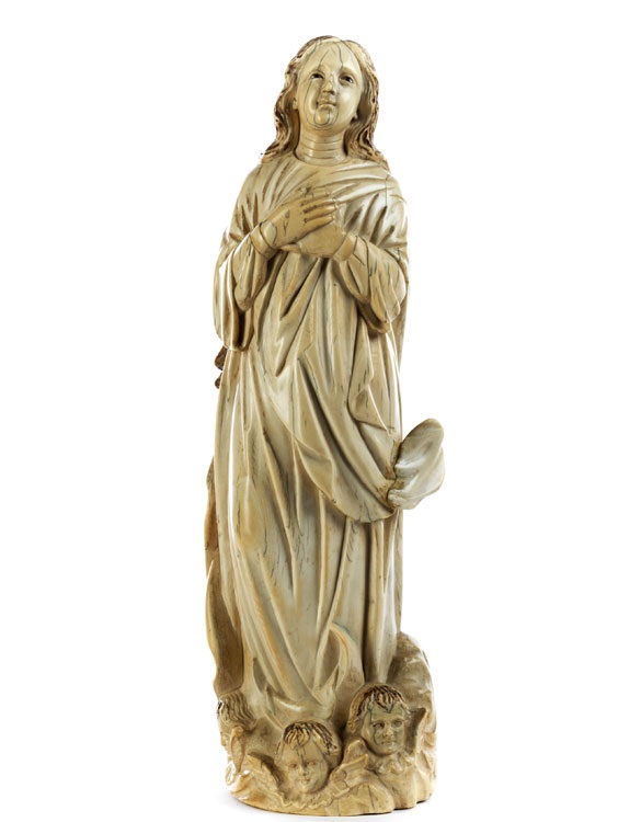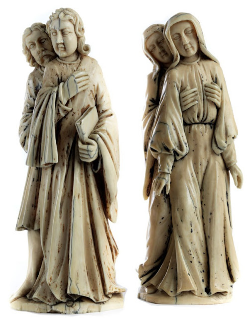 The two Marys and Johannes Evangelist with gospel book, behind the Holy Nicodemus. The ivory figures formerly colored calm, still preserved remains of the holder into the garment depths. flattened at the back. More on the 2 Marys