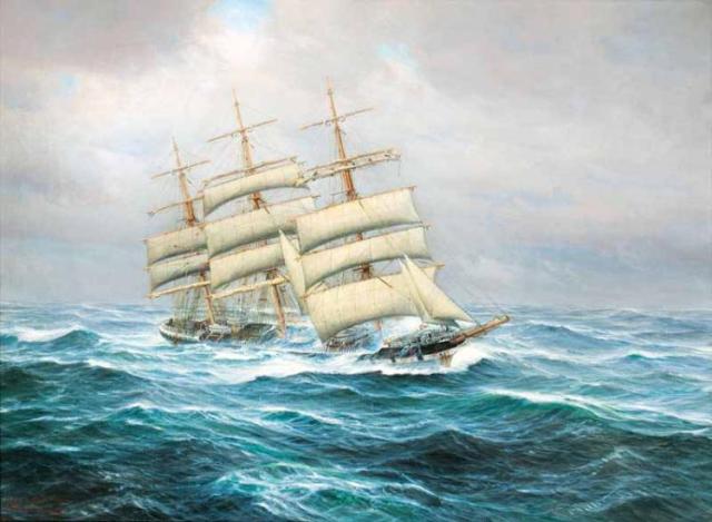 Holst was a very active artist and was tasked by many shipowners to paint portraits of their ships because of his high quality works. Portraits of sailing ships, for the shipping company F. Laeisz in Hamburg et al., form the main part of his complete works that consists of about 1000 paintings. The paintings of Holst are especially valued in northern Germany. More on Johannes Holst