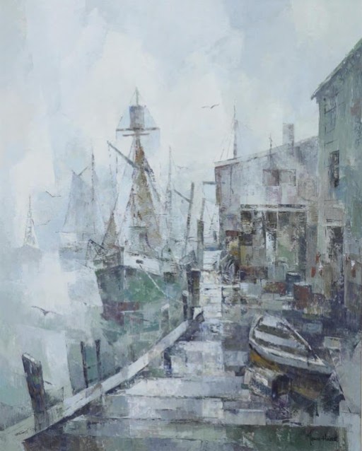 John Cuthbert Hare, 1908-1978, was a watercolorist who painted boats, seascapes and harbor scenes. He was primarily associated with New England, especially Cape Cod, Massachusetts where he spent his summers from 1938 to 1965. However, he lived in Florida where he was a member of the St. Augustine Art Association. He first studied commercial art in Brooklyn at the Pratt Institute and also studied at the Art Students League in Manhattan. He worked for Hearst newspapers corporation, and in 1933 married. In the next few years, he and his wife traveled extensively, camping and painting and exhibiting his work in galleries. In Provincetown, they also exhibited paintings that Hare had completed in Florida.The couple liked St. Augustine so well that they returned two years later, joined the Art Association, and set up a studio. Attracted to the rolling farmland, they moved to Amherst, Massachusetts. He also painted at Gloucester, and from 1967 to 1977 they lived at Yarmouthport and in 1977, moved to Palm Beach, Florida where he died three years later.His work is in the collections of the Lowe Art Museum, the Lightner Museum in Florida and the Smith College Museum of Art in Massachusetts. More on John Cuthbert Hare