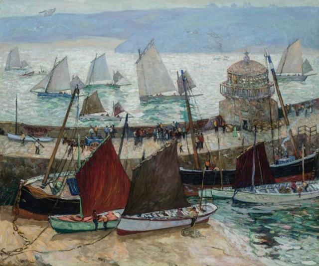 The Old Lighthouse and Fleets of St. Ives, c. 1915