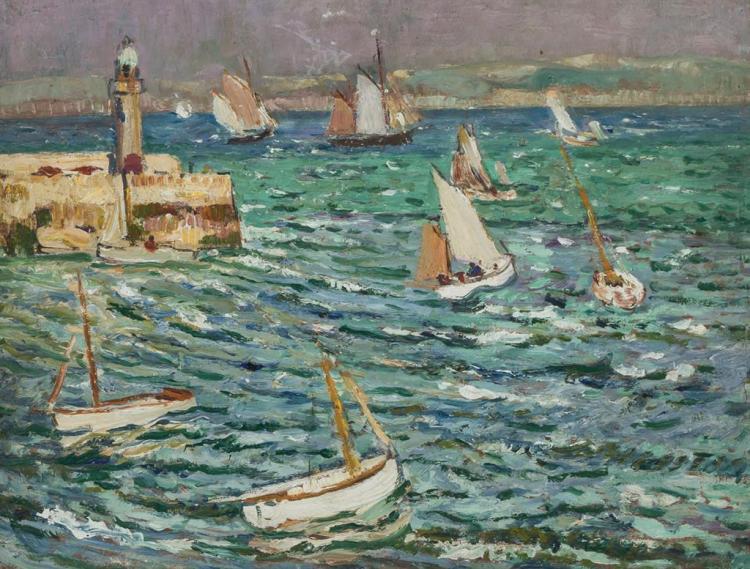 Lever arrived in New York City in 1912 and painted views of the Hudson River, Times Square and Central Park. Upon discovering the American east coast, he painted in Gloucester, MA for several summers and at Marblehead, MA. From 1919 to 1931, Lever taught art classes at the Art Students League of New York where he maintained a Gloucester studio and often traveled to paint on Nantucket and Martha’s Vineyard. In 1924, Lever was commissioned to paint a portrait of the presidential yacht, Mayflower, which was subsequently presented to President Calvin Coolidge in the Cabinet Room of the White House.