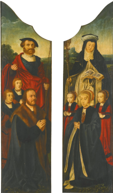 THE TWO WINGS DEPICTING MALE AND FEMALE DONORS AND THEIR CHILDREN WITH SAINTS SEBASTIAN AND GERTRUDE OF NIVELLES
