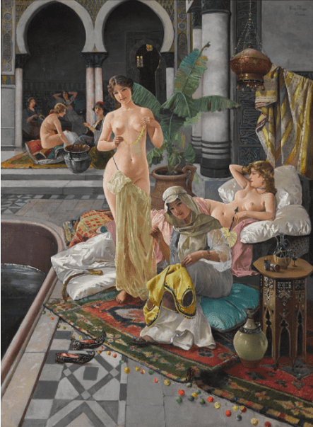 Blas Olleros y Quintana was a Spanish visual artist who was born in 1852. Many works by the artist have been sold at auction, including ‘In a Persian Bath’ (above)sold at Sotheby’s London ‘European Paintings’ in 2012. More on Blas Olleros y Quintana
