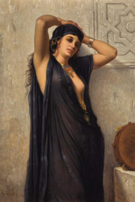 From his travels in North Africa and the Middle East in the 1860s , he created works that were often very successful. His first voyage to Morocco dates from 1866. In 1866 he painted Femme Fellah, which earned him the nickname of a painter of the fellahs , a work purchased by the Emperor for his personal collection, but destroyed in the fire at the Château de Saint-Cloud in 1870. A replica, executed By Charles Landelle, is preserved in the museum of the Old Castle of Laval.