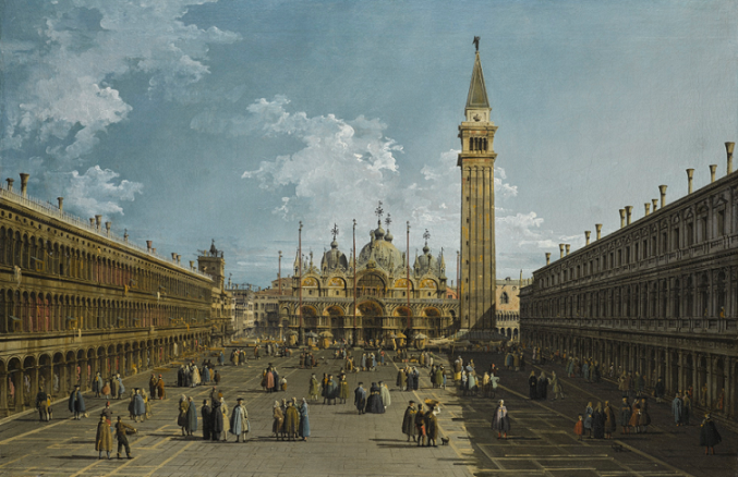 The sight of the Basilica of San Marco and the Campanile flanked by the Procuratie Vecchie and the Procuratie Nuove from the West end of the Piazza down its central axis has always been one of the quintessential Venetian views, and it is hardly surprising that the many paintings of it by Luca Carlevarijs, Canaletto, Michele Marieschi and Francesco Guardi are often among those artists’ most impressive works. Canaletto’s earliest view of it in the Museo Thyssen, Madrid, datable to circa 1723, as it shows the new pavement of the Piazza designed by Andrea Tirali in the process of being laid, has long been considered one of the great masterpieces of the painter’s first style. More on this painting