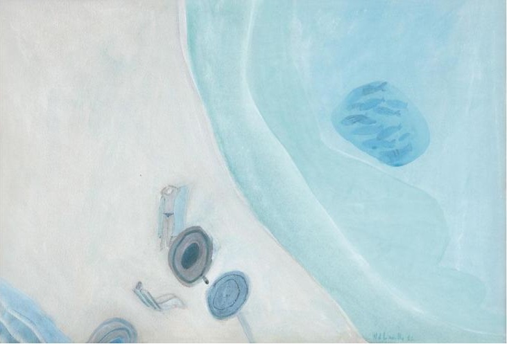 Figures on sand bar and fish, c. 1984