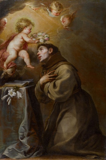 Until its recent acquisition for the Spanish Gallery at Bishop Auckland, this archetypal image of Saint Anthony had been in the collection of the Marquises de Legarda, Spain, for over three centuries. With remarkable painterly fluency Carreño expresses the belief in a personal relationship with Christ through the example of Saint Anthony of Padua, depicted here with the Christ Child at the crowning moment of his spiritual life. In composition and colouring the picture owes as much to the Baroque style of Rubens and other Flemish artists so admired by Carreño as it does to the painterly quality of the Venetians. More on this painting