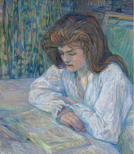 Painted in 1889, La Liseuse is a major example of the penetrative, insightful character of Toulouse-Lautrec’s portraiture, as well as of his remarkably modern style. As Anne Roquebert wrote: ‘Hélène Vary was Lautrec’s young Montmartre neighbour. Deciding one day that ‘she turned out to be very beautiful, extremely beautiful, admirable!’ Lautrec determined to paint her portrait and asked his friend François Gauzi to bring along his camera, because he wanted ‘to have her photo. Her Grecian profile is incomparable!’ Gauzi, to whom we owe the record of this conversation, added: ‘Hélène was not a redhead; her hair was a light chestnut brown; but this time Lautrec had eyes only for the purity of the profile. More on this painting
