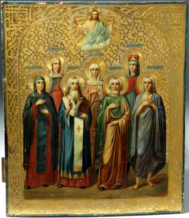 19th C. Russian Icon, Chosen Saints Blessed by Our Lord