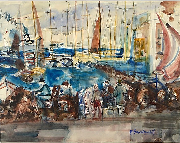 Pierre Gaillardot, 1910-2002 was born on August 2, 1910 in St. Florent (Yonne). He was a painter and watercolorist. He exhibited at many of the annual Paris Salons, of which he was also a member, including the Salon d’Automne, Salon des Indépendants, and Salon of the Société Nationale des Beaux-Arts. He was the chief curator of the Salon du Dessin et de la Peinture a l’Eau. He held solo exhibitions in Paris, Cannes, Nice, Antibes, Dijon, and other towns. He received a number of awards, prizes, and gold medals.