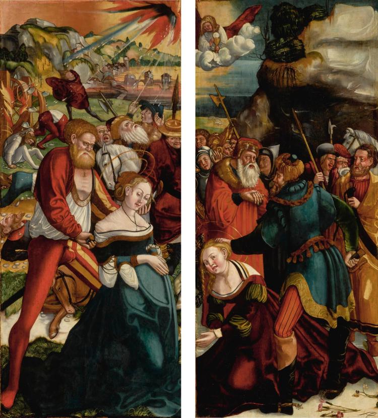 Two wings from an altarpiece: The Martyrdom of Saint Catherine; The Martyrdom of Saint Barbara
