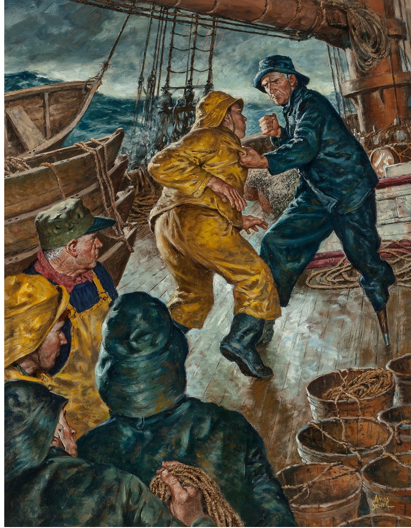 Amos F. Sewell, (1901-1983), was born in Oakland, California. By 1921 he had a job as a bank clerk and he studied night classes at the California School of Fine Arts. In his spare time he drew unsolicited interior story illustrations and mailed them to pulp publishers. He sold his first drawings to Street & Smith.