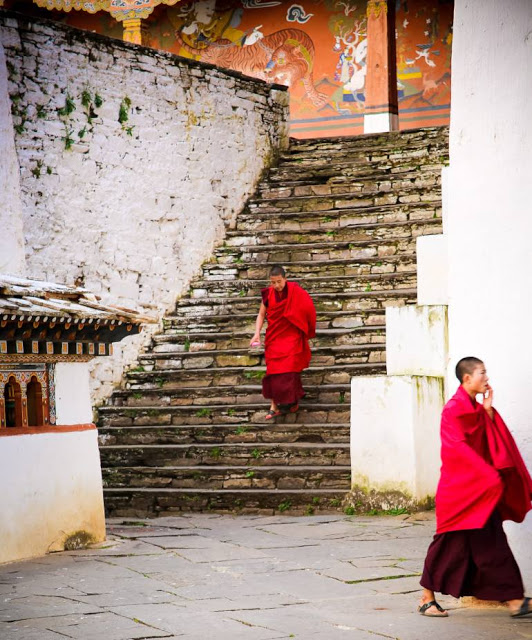Buddhists monks hurrying to their prayers at The Dzong Paro Bhutan. More on this photograph