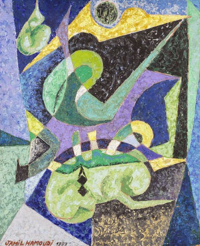 Jamil Hamoudi (1924–2003) was an Iraqi artist who became the Director of the Ministry of Culture’s Fine Arts Department. He is noted for his involvement in various Iraqi and Arabic art movements including the Hurufiyya movement which bridged the gap between traditional and modern Iraqi art.