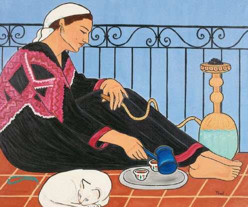 Mona Trad Dabaji graduated from the American University of Beirut, just after the outbreak of the civil war in Lebanon. She lives and works in Beirut where she has been teaching painting since 1993. The artist has exhibited in Lebanon, France, Jordan, the United States and the United Arab Emirates. Beirut, The Phantom City, a Beirut exhibition, portraying a city devastated in 1992, was a milestone in the beginning of her career. Since then, all his work evolves around a recurring theme: Lebanon, its traditions and cultures. Through her characters, mainly women, she manages to convey with precision her great complexity and diversity. More on Mona Trad Dabaji