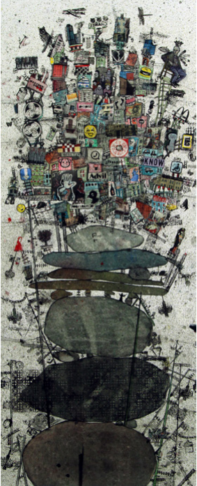 Mixed media and paper, collage on canvas