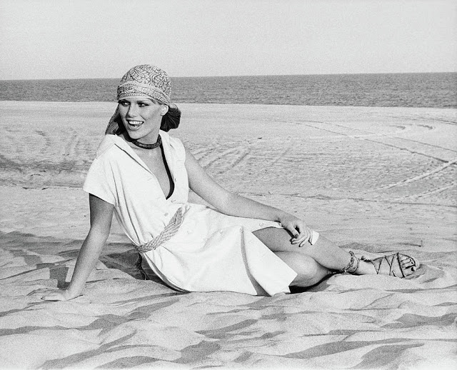 Patti Hansen Wearing A Shirtdress On A Beach, c. 1975