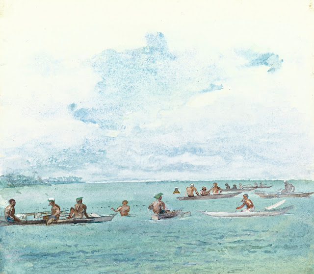 FISHING PARTY IN CANOES, SAMOA, c. 1890